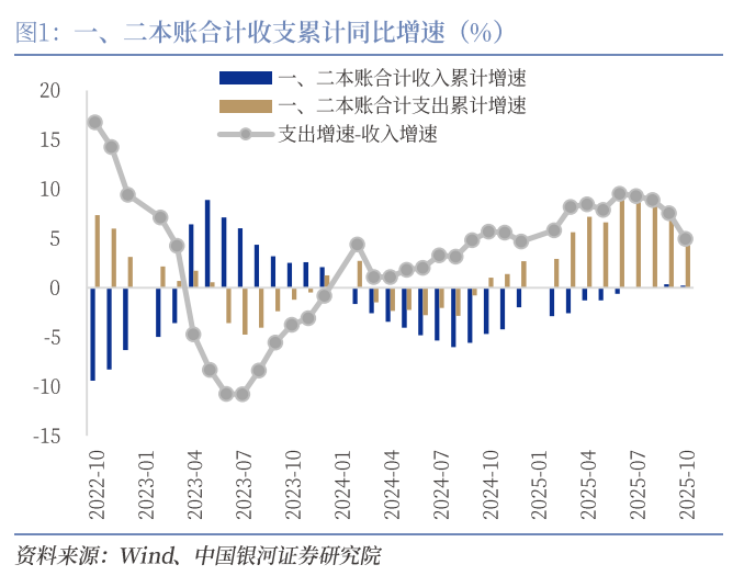 本文摘自:中国银河证券2025年11月17日发布的研究报告《增量资金有望加速到位——2025年1-10月财政数据解读》