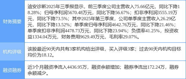 2025年10月31日,中国银河研究员程培,孟熙发布了对迪安诊断的研报《2025年三季报业绩点评:经营质量持续回升,创新业务模式深化》,该研报对迪安诊断给出“买入”评级。证券之星数据中心根据近三年发布的研报数据计算,该研报作者对此股的盈利预测准确度为0.76%。