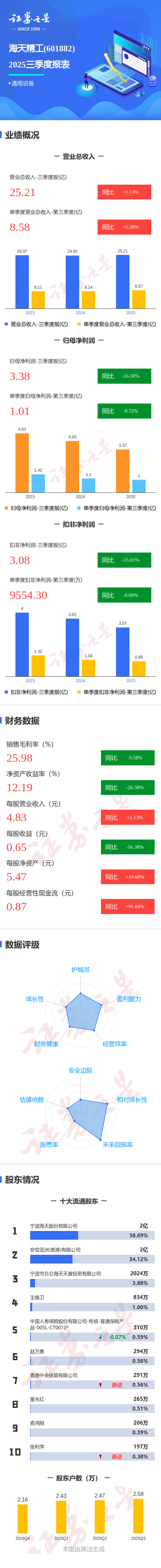 图解海天精工三季报:第三季度单季净利润同比下降8.73%