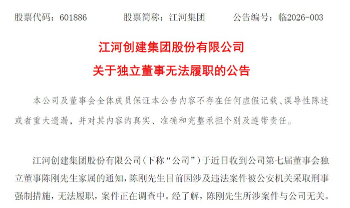V观财报|江河集团:独立董事陈刚因涉违法案件无法履职