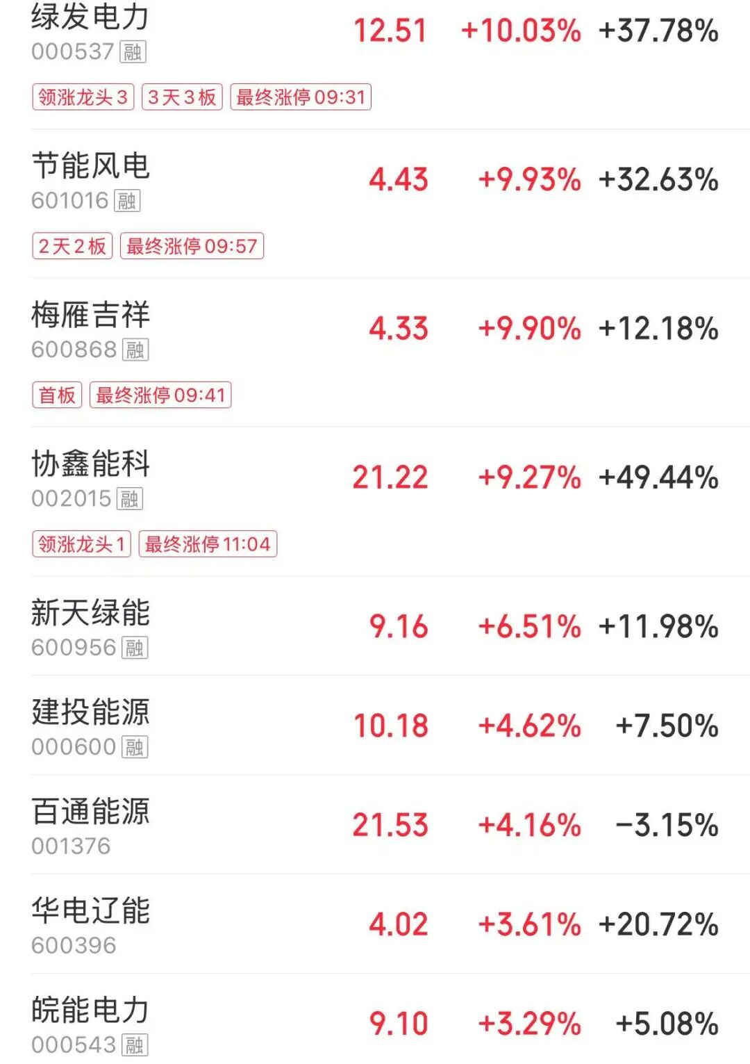 绿电概念反复活跃,绿发电力、华电能源3连板。
