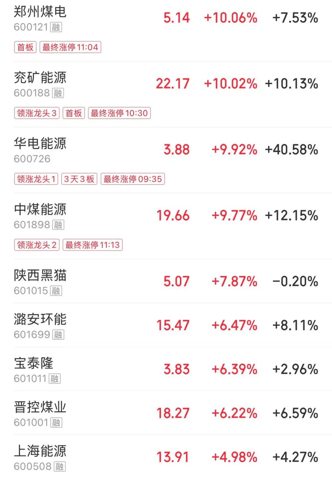 煤炭板块涨势扩大,中煤能源盘中触及涨停,创2008年2月以来新高。