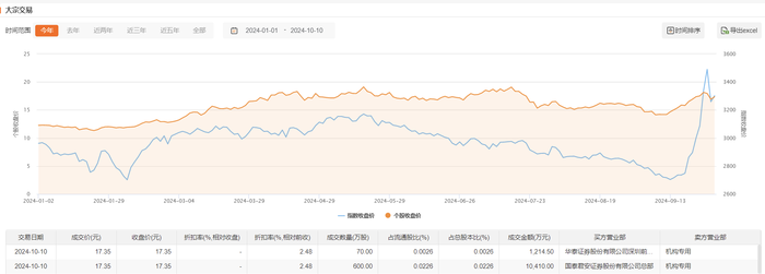 今日大宗交易成交670万股,成交额1.16亿元,占当日总成交额的2.16%,成交价17.35元,较市场收盘价持平。