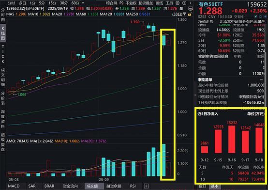 紫金矿业涨超2%,有色50ETF一度涨超2%,连续10日吸金近8亿元
