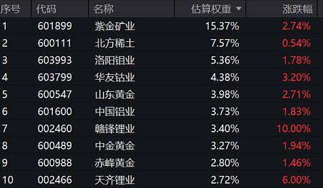 相关成分股:$中孚实业(600595)、$北方铜业(000737)、$紫金矿业(601899)、$北方稀土(600111)、$山东黄金(600547)、$洛阳钼业(603993)、$中国铝业(601600)、$华友钴业(603799)、$中金黄金(600489)、$赤峰黄金(600988) (成分股仅做展示使用,不构成投资建议)