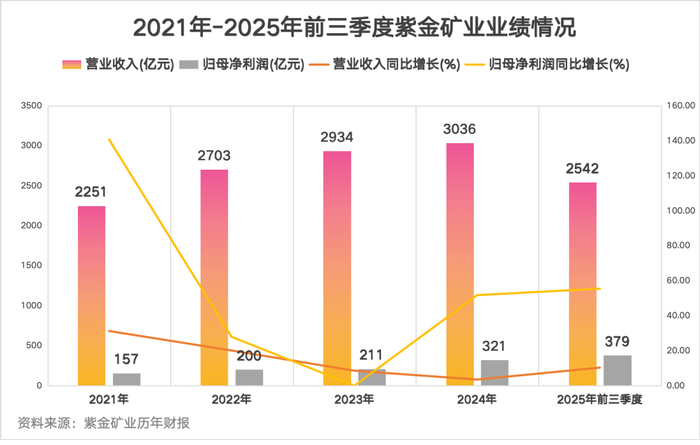 2025年的紫金矿业,迎来了业绩的全面爆发。黄金和铜这两大核心产品量价齐升,推动公司盈利创下历史新高。