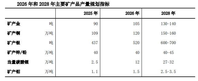 以2025年产量为基数计算,到2028年公司矿产铜(规划产量中位数)预期增幅为42%,矿产银产量预期增幅为48.7%,矿产锌/铅预期增幅为6.3%。