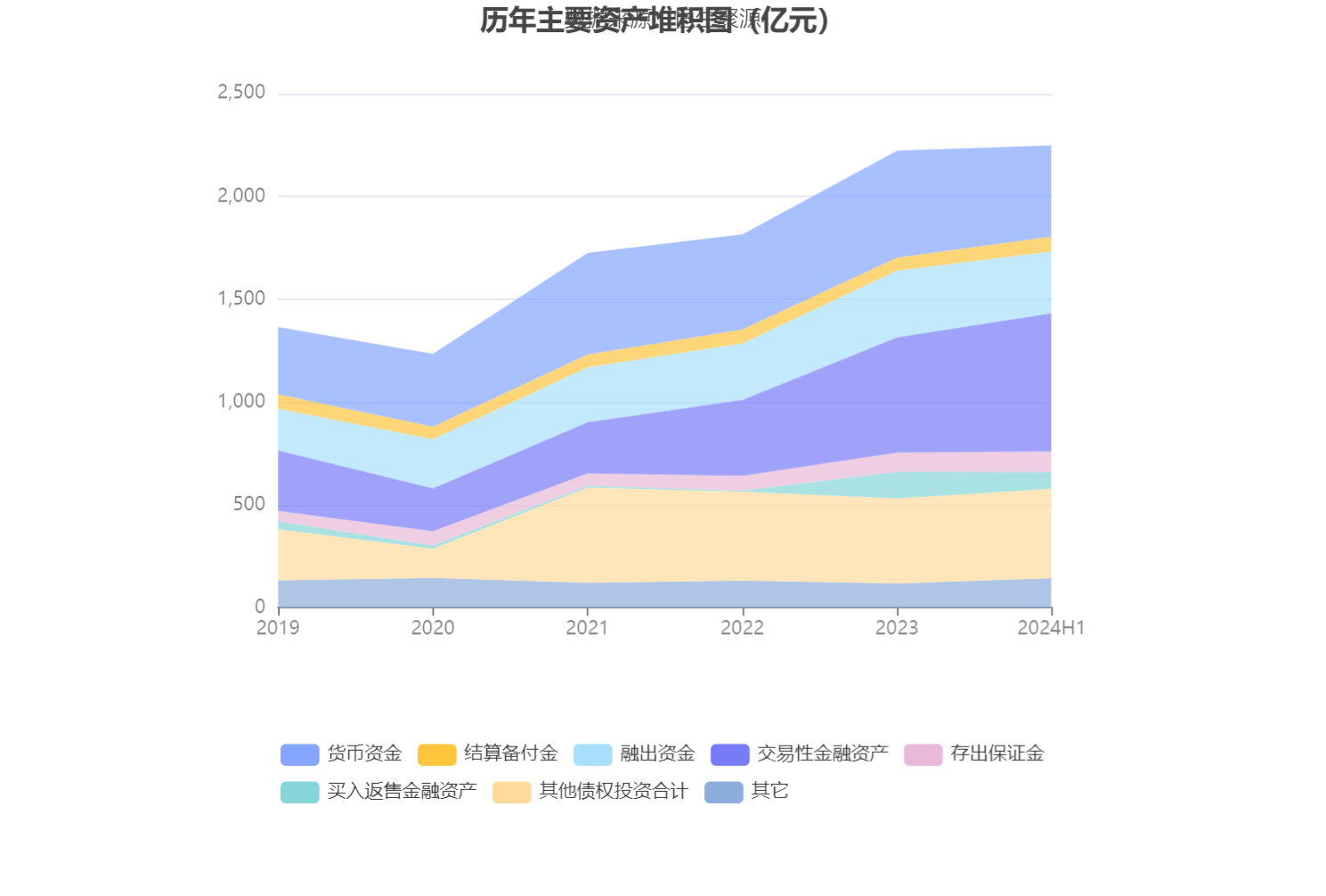 资产重大变化方面,截至2024年上半年末,公司交易性金融资产较上年末增加19.96%,占公司总资产比重上升4.70个百分点;货币资金较上年末减少14.75%,占公司总资产比重下降3.67个百分点;买入返售金融资产较上年末减少36.46%,占公司总资产比重下降2.16个百分点;融出资金较上年末减少7.51%,占公司总资产比重下降1.24个百分点。