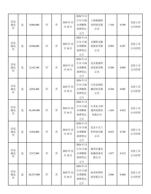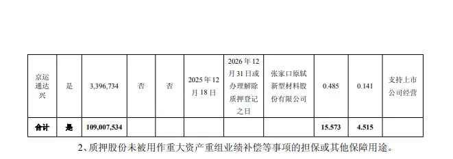 这是京运通第二次向供应商质押股份。2025年12月22日,京运通发布关于控股股东股份质押的公告显示,控股股东京运通达兴将股份质押给了9家供应商。