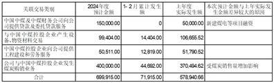 2024年,公司预计与中国中煤及其控股企业发生设备、物资配件采购、煤矿工程建设和金融服务等关联交易,相关关联交易预测情况如下表: