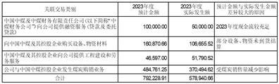 公司与中国中煤及其控股企业2023年度发生关联交易情况如下表: