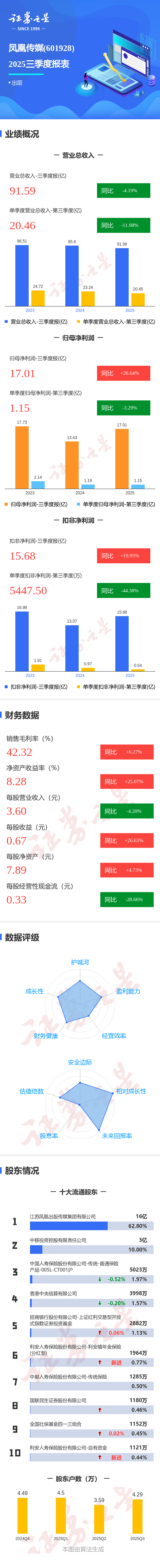图解凤凰传媒三季报:第三季度单季净利润同比下降3.30%