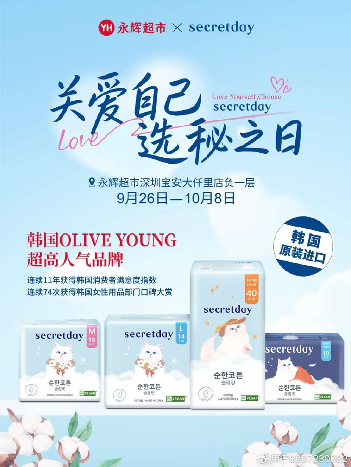 更特别的是,secretday品牌创建了韩国首个“女性用品体验馆”,打破了女性卫生用品“无体验”的行业现状,这一模式未来有希望在永辉门店落地。