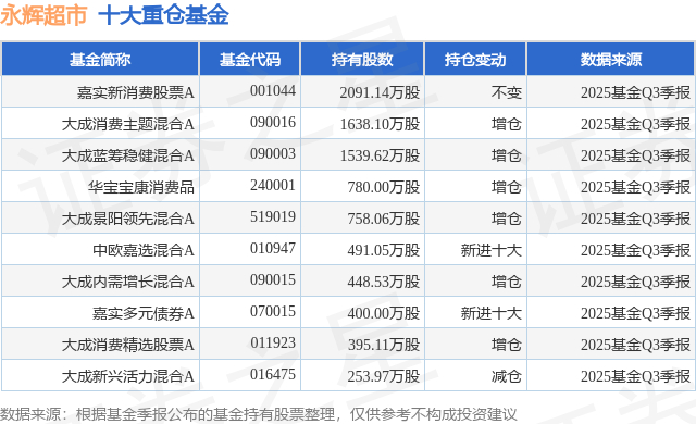 重仓永辉超市的前十大公募基金请见下表: