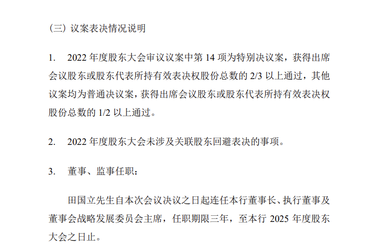 中国网财经6月30日讯 昨日,中国建设银行发布2022年度股东大会决议公告显示,田国立自本次会议决议之日起连任中国建设银行董事长、执行董事及董事会战略发展委员会主席,任职期限三年,至中国建设银行2025年度股东大会之日止。