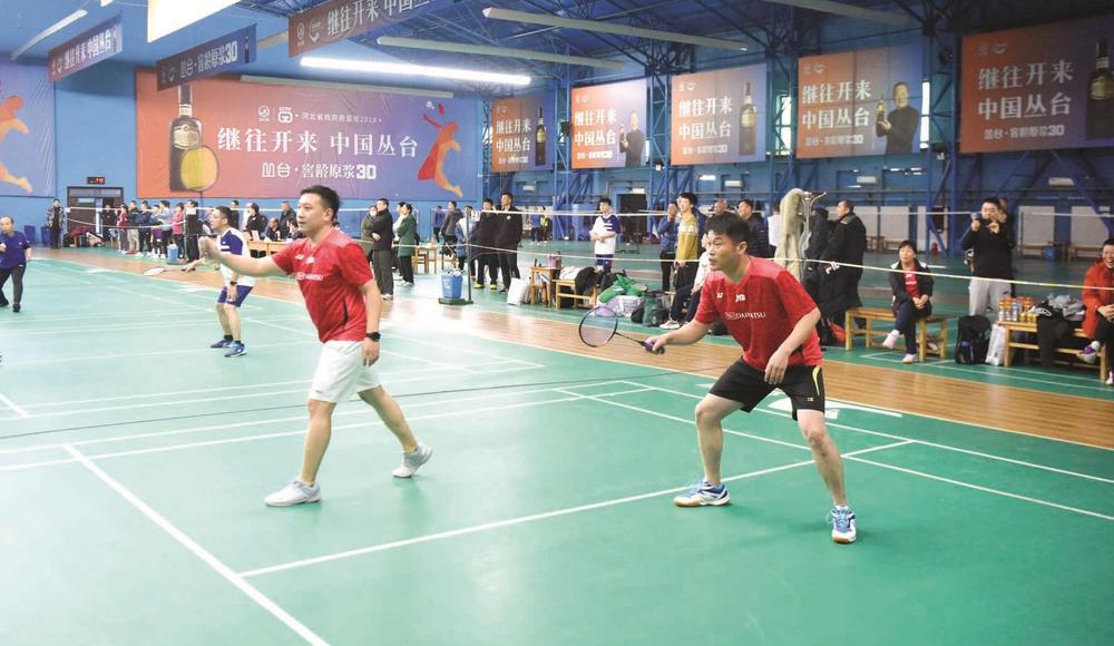 ”杯邯郸市金融系统职工羽毛球赛在金业球馆开赛,有来自全市各金融机构的13支代表队近100多名选手参赛。图为比赛现场。 本报记者 刘靖 摄