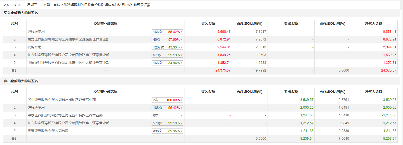 具体来看,机构合计净买入2944.01万元。此外,沪股通专用、东方证券上海浦东新区源深路证券营业部分别买入9666.48万元、8872.91万元;民生证券郑州桐柏路证券营业部、沪股通专用分别卖出3539.57万元、2030.20万元。