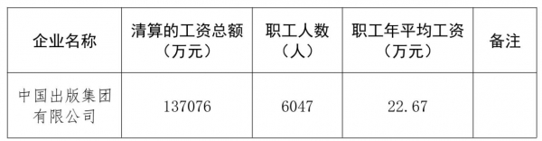 同时,中国出版集团还对2024年工资分配信息进行了披露,职工人数为6047人,职工年平均工资为22.67万元。