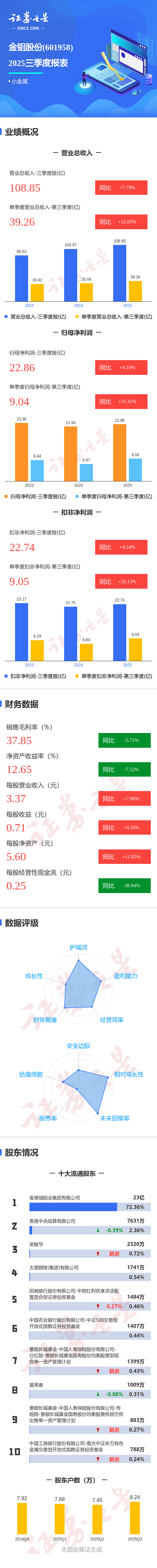 图解金钼股份三季报:第三季度单季净利润同比增长31.42%