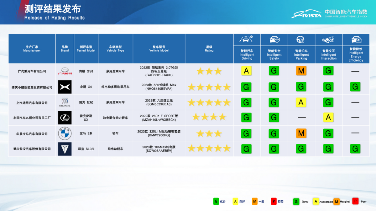 IVISTA中国智能汽车指数2023年第五批次测评结果概览
