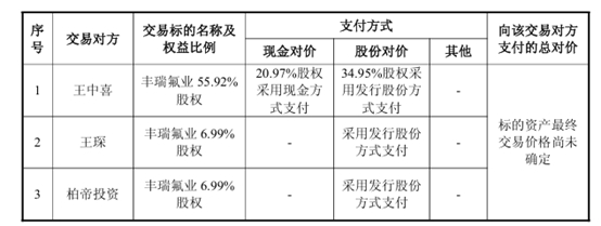拟收购洛阳丰瑞氟业69.90%股权