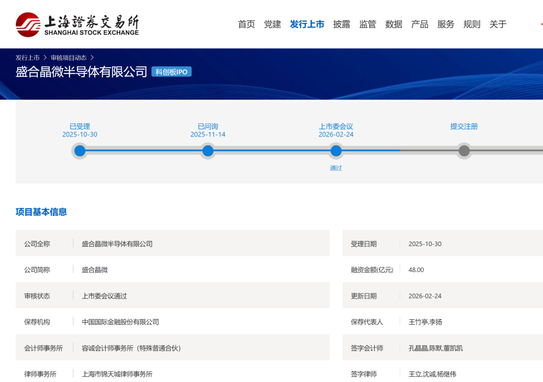 从2025年10月30日获得受理,到2026年2月24日通过上市委会议,总共用了不到4个月(117天)。