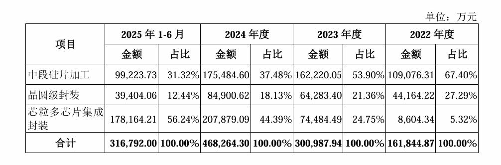 2、盛合晶微的主营业务持续顺应先进封装产业发展趋势