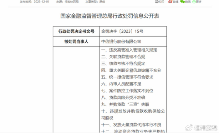杠杆游戏注意到,中信银行四川罚单的特点在于其“集群性”,一家省级分行及下辖多家分支机构同时被罚,说明问题并非个别员工或个别网点的偶然行为,而是该区域在管理上出现了系统性偏差,总行的垂直管理和风险控制体系在区域层面未能有效落地。