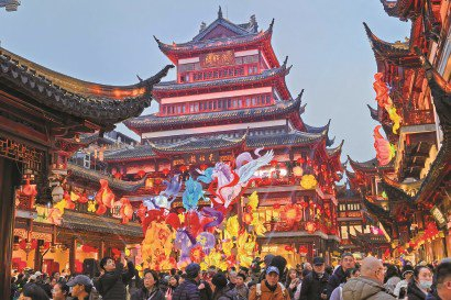豫园灯会现场年味十足,人头攒动。 刘阳子 摄