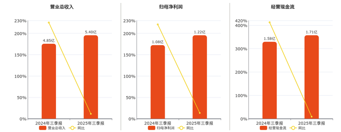 公司营业总收入为5.40亿元,在已披露的同业公司中排名第110。归母净利润为1.22亿元。经营活动现金净流入为1.71亿元。