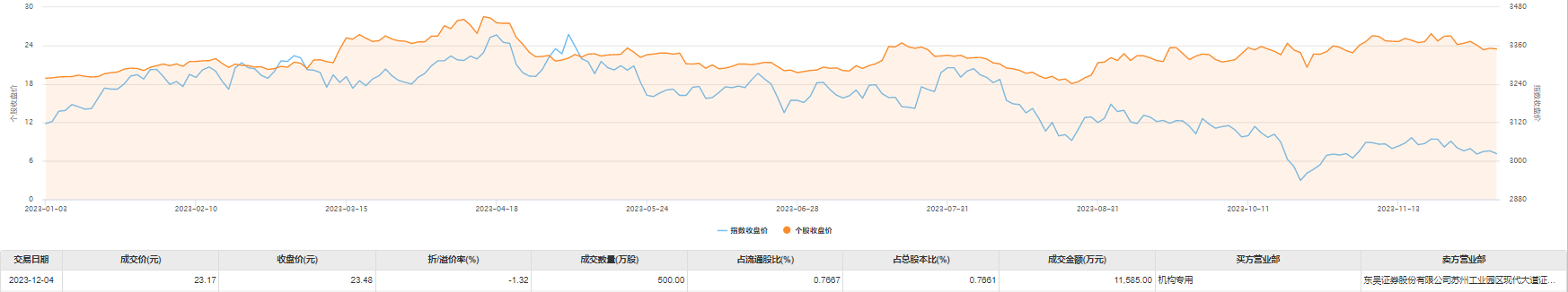 今日大宗交易成交500万股,成交额1.16亿元,占当日总成交额的22.22%,成交价23.17元,较市场收盘价折价1.32%。