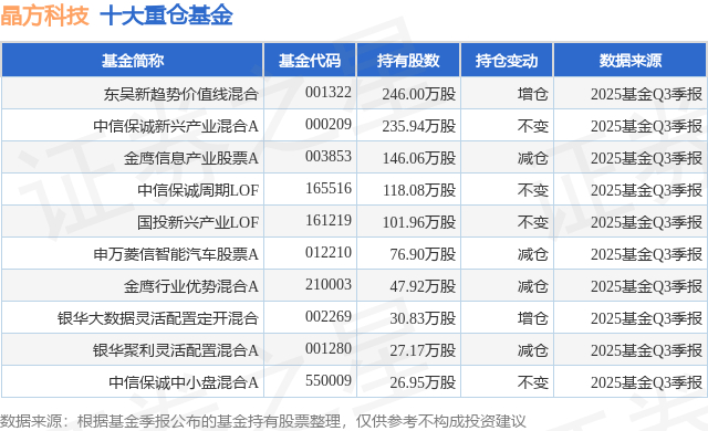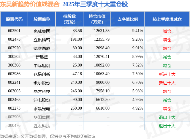 根据2025基金Q3季报公募基金重仓股数据,重仓该股的公募基金共20家,其中持有数量最多的公募基金为东吴基金的东吴新趋势价值线混合。东吴新趋势价值线混合目前规模为13.42亿元,最新净值3.1462(11月19日),较上一交易日下跌0.03%,近一年上涨71.74%。该公募基金现任基金经理为刘元海。刘元海在任的基金产品包括:东吴移动互联混合A,管理时间为2016年4月27日至今,期间收益率为433.24%;东吴新能源汽车股票A,管理时间为2022年1月25日至今,期间收益率为76.23%;东吴嘉禾优势精选混合A,管理时间为2023年8月15日至今,期间收益率为112.86%。