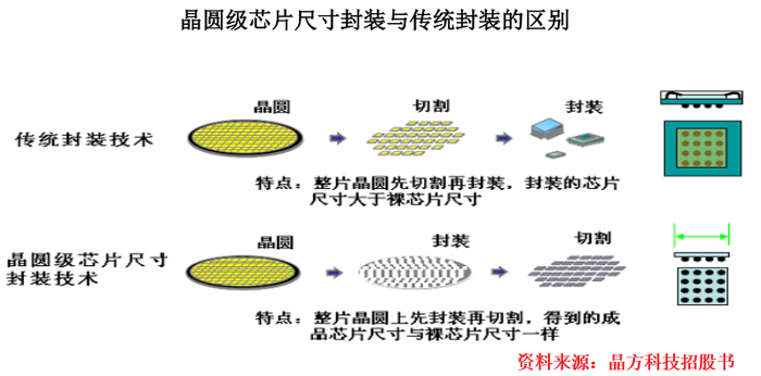 这种技术比单纯的WLP(晶圆级封装)更进一步,将晶圆级封装(WLP)和芯片尺寸封装(CSP)相结合,既有前者的成本、效率优势,还同时兼顾后者的集成电路小型化优势。