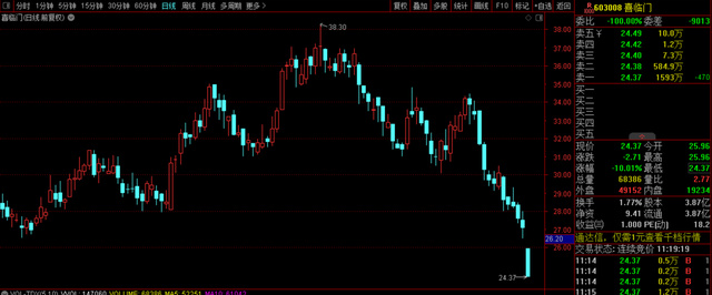 4月26日,喜临门开盘三分钟跌停,封单量虽然不大,但是没有多少资金跌停板吃货,截止发稿时,喜临门报于24.37元,总市值为94亿。