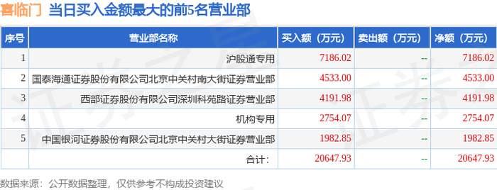 从龙虎榜公布的当日买卖数据来看,机构合计净买入2754.07万元,北向资金合计净卖出316.9万元。北京中关村等知名游资榜上有名。(知名游资北京中关村一般指中国银河证券股份有限公司北京中关村大街证券营业部席位,根据市场资料整理,仅供参考)