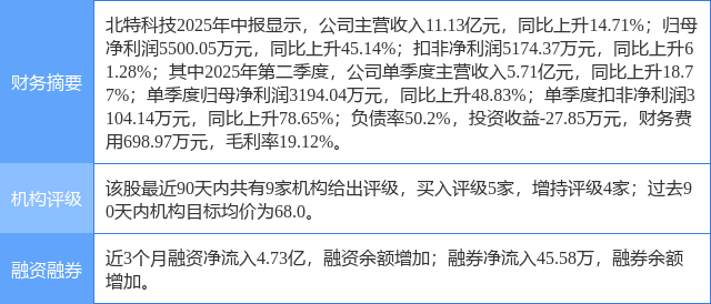 今日北特科技(603009)涨7.35%,收盘报49.93元。