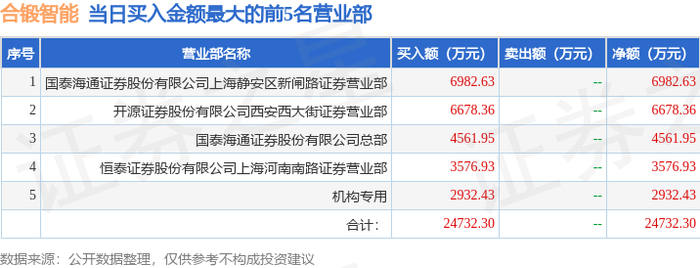 9月30日合锻智能(603011)龙虎榜数据:游资上海超短帮上榜