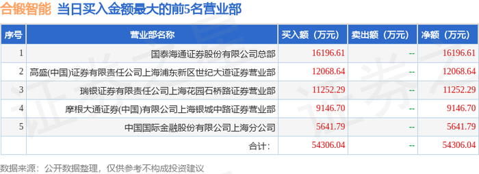 10月15日合锻智能(603011)龙虎榜数据:游资宁波桑田路上榜