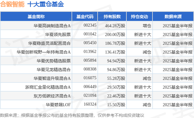根据2025基金半年报公募基金重仓股数据,重仓该股的公募基金共10家,其中持有数量最多的公募基金为华夏基金的华夏高端制造混合A。华夏高端制造混合A目前规模为8.99亿元,最新净值1.425(10月16日),较上一交易日上涨0.56%,近一年上涨17.09%。该公募基金现任基金经理为吴昊。