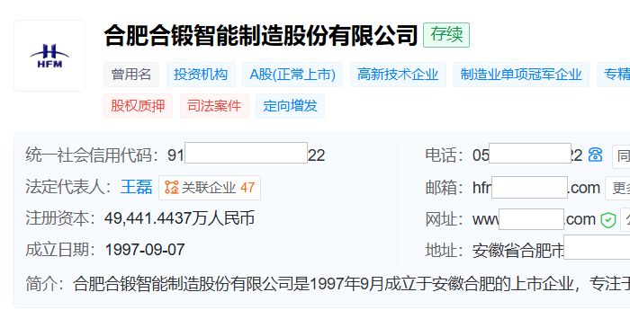 天眼查显示,合锻智能成立于1997年9月,位于安徽省合肥市,2014年11月在上交所主板上市,主业为液压机、机械压力机等高端成形机床以及色选机等智能分选设备。2025年中报中,公司称其主营产品还包括聚变堆核心零部件尖端制造、智能化集成控制及新材料等。