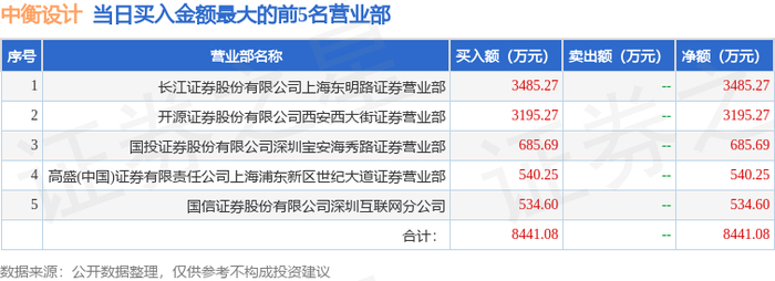 证券之星消息,沪深交易所2025年12月29日公布的交易公开信息显示,中衡设计(603017)因有价格涨跌幅限制的日收盘价格涨幅偏离值达到7%的前五只证券登上龙虎榜。此次是近5个交易日内第1次上榜。
