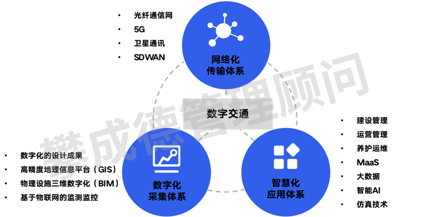 我认为数字交通的概念比较简单,分为数字化采集体系、网络化传输体系、智能化应用体系三个方面,行业中更关注的是智能化应用体系。