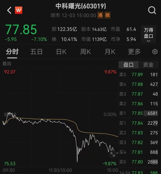 12月3日,中科曙光(603019.SH)午后短线跳水跌超9%。截至收盘,该股下跌7.10%,成交额122.4亿元。云天励飞、中国长城、浪潮信息、中国软件、东方国信等科技股纷纷跟跌。