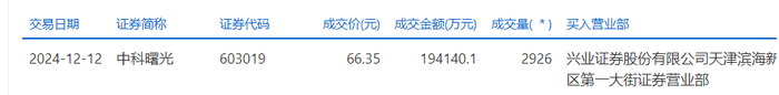 中科曙光今日大宗交易折价成交2926万股,成交额19.41亿元