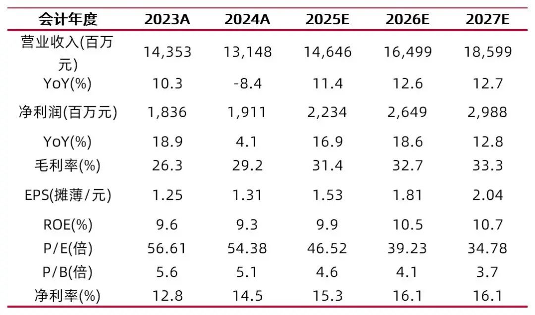 产品结构及产销管理优化推动公司盈利能力显著提升。2024年公司收入有所承压,主要是因为公司开始重新规划产品定位,逐步减少低毛利的项目。分产品看,2024年公司IT设备业务实现收入117.06亿元,同比减少8.40%,软件开发、系统集成及技术服务业务实现收入13.95亿元,同比减少10.94%;分客户看,2024年公共事业客户收入为71.56亿元,同比减少14.43%,企业客户收入为59.45亿元,同比减少0.65%。随着公司将资源向高附加值产品和服务的研发和推广上倾斜并优化产销管理模式以提升运营效率,2024年公司毛利率进一步提高至29.16%,较上年同期增加2.90个百分点。2024年公司期间费用率保持稳定,其中销售、管理、研发费用率分别较上年同期增加0.64、0.63、0.66个百分点。受益于战略转型及管理优化,公司净利率也从23年的13.08%提升至15.16%。