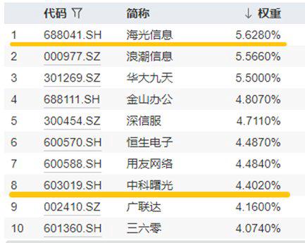 附上中证信创指数前十大权重股: