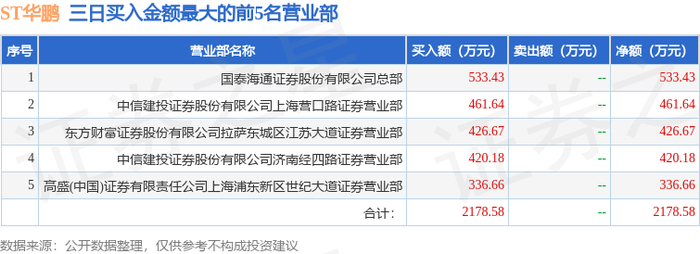 11月17日ST华鹏(603021)龙虎榜数据