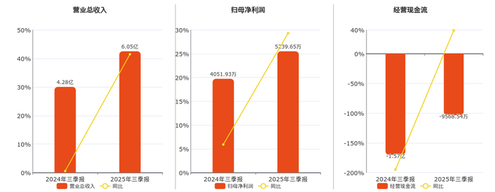 公司营业总收入为6.05亿元,在已披露的同业公司中排名第89。归母净利润为5239.65万元。经营活动现金净流入为-9568.54万元,在已披露的同业公司中排名第153。