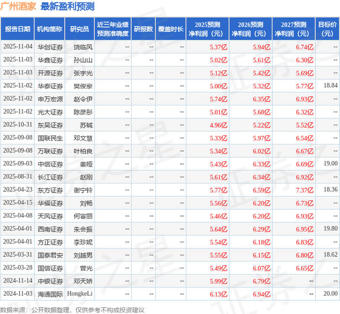 最新盈利预测明细如下: