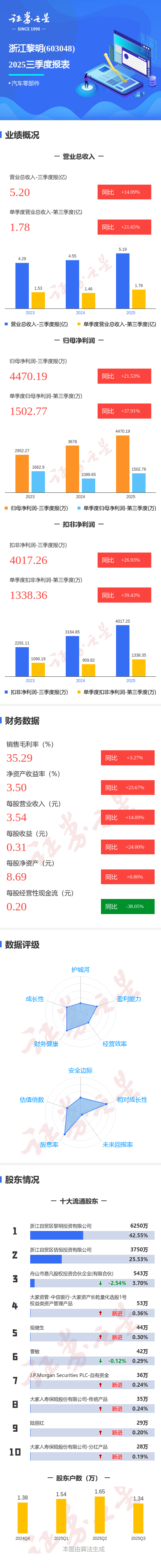 图解浙江黎明三季报:第三季度单季净利润同比增长37.91%
